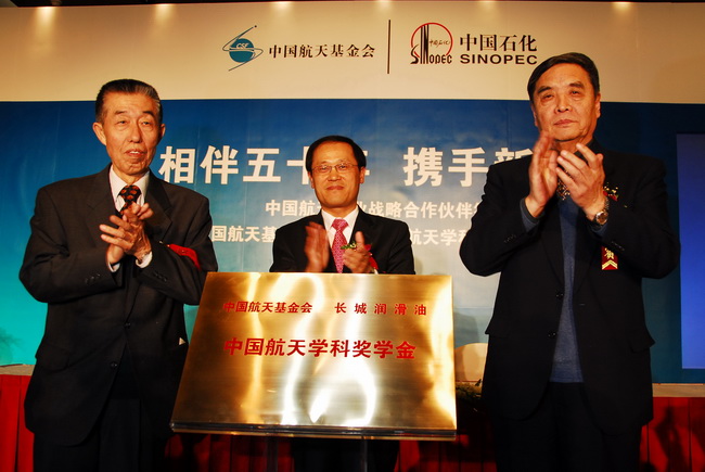 3月23日,“中國航天事業(yè)戰(zhàn)略合作伙伴簽約儀式暨中國航天基金會·長城潤滑油航天學(xué)科獎學(xué)金設(shè)立儀式”在北京國家會議中心隆重舉行。中國航天基金會理事長白拜爾、中國探月工程總設(shè)計師孫家棟、中國載人航天工程首任總設(shè)計師王永志、中國石化潤滑油公司總經(jīng)理宋云昌、中國石化和中國航天基金會等相關(guān)領(lǐng)導(dǎo)和嘉賓以及浙江大學(xué)航空航天學(xué)院院長沈榮駿、常務(wù)副院長鄭耀、黨委書記吳丹青、學(xué)生工作辦公室主任戴志潛出席了簽約儀式。