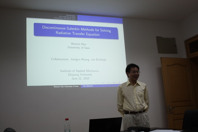 美國愛荷華大學應用數學系韓渭敏教授和加拿大阿爾伯特大學機械系茹重慶教授應邀分別于2010年6月22日上、下午為應用力學研究所和其它相關單位的師生作了精彩的學術報告。