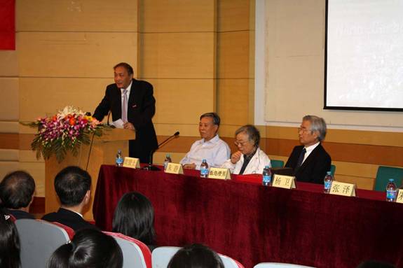 浙江大學名譽教授受聘儀式于10月11日下午在永謙活動中心舉行,楊衛校長致辭中對Iijima教授的來訪表示熱烈歡迎,對他在納米科學方面的貢獻做了充分肯定,指出名譽教授是浙江大學授予境外著名專家學者的最高榮譽性學術稱號,并希望通過這一努力,來加速浙江大學在國際合作方面的步伐,從而促進科學研究的發展。楊衛校長向Iijima教授頒發了聘任證書,并合影留念。Iijima教授做了題為“Nano-Carbon Materials”的報告,就碳納米管的應用和表征以及石墨烯材料制備方面的前沿與浙江大學師生進行交流。