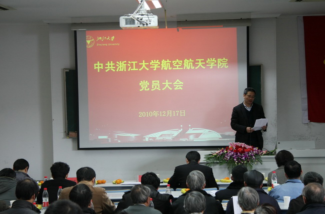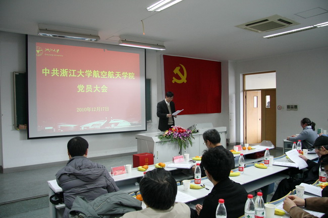 在大會的第一階段,本屆黨委書記吳丹青向大會作了學(xué)院黨委工作報告。她全面回顧了學(xué)院建院近四年來黨委的主要工作,認(rèn)真總結(jié)了本屆黨委工作取得的重要經(jīng)驗(yàn)。四年來,學(xué)院黨委以鄧小平理論和“三個代表”重要思想為指導(dǎo),以深入開展學(xué)習(xí)實(shí)踐科學(xué)發(fā)展觀活動為載體,圍繞學(xué)院的各項(xiàng)中心工作開展基層黨建工作,為學(xué)科隊(duì)伍建設(shè)、教學(xué)科研服務(wù)和安全穩(wěn)定等工作提供了堅強(qiáng)的政治保障和組織支撐,為學(xué)院的新一輪發(fā)展奠定了良好的基礎(chǔ)。她相信經(jīng)過換屆選舉,新一屆學(xué)院黨委將會在總結(jié)本屆工作經(jīng)驗(yàn)的基礎(chǔ)上,繼續(xù)以圍繞中心、服務(wù)大局、推動發(fā)展的工作思路和改革創(chuàng)新精神,不斷推進(jìn)學(xué)院黨的建設(shè),為學(xué)院的科學(xué)發(fā)展、和諧發(fā)展提供堅強(qiáng)的政治、思想和組織保障。學(xué)院常務(wù)副院長、本屆黨委組織委員鄭耀還作了關(guān)于學(xué)院黨費(fèi)收繳、使用和管理情況報告。在熱烈的掌聲中,大會一致審議通過了中共浙江大學(xué)航空航天學(xué)院委員會工作報告和黨費(fèi)收繳、使用、管理情況報告。