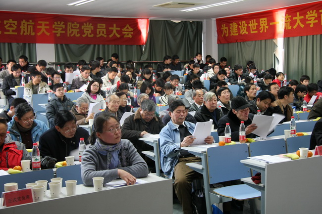 本次黨員大會應(yīng)到黨員167人,實(shí)到141人。大會在莊嚴(yán)的國歌聲中開幕。張土喬副校長對本次大會的召開表示熱烈祝賀。他充分肯定了航空航天學(xué)院上一屆黨委所取得的成績,對加強(qiáng)和改進(jìn)新形勢下黨的建設(shè)提出了明確要求,對新一屆黨委工作和全體黨員提出了殷切希望。他指出,本屆航空航天學(xué)院黨委圍繞學(xué)院的中心工作,團(tuán)結(jié)拚搏,開拓進(jìn)取,為推動學(xué)院各項(xiàng)事業(yè)科學(xué)發(fā)展、維護(hù)和諧穩(wěn)定、創(chuàng)建一流學(xué)院、一流學(xué)科奠定了堅實(shí)的基礎(chǔ);在深化教育教學(xué)改革,提高科研水平,加強(qiáng)學(xué)科建設(shè),培養(yǎng)高素質(zhì)人才、改善辦學(xué)條件等方面取得了顯著成效,學(xué)院呈現(xiàn)出欣欣向榮、蓬勃發(fā)展的喜人局面。尤其是今年以來,皮衛(wèi)星搭載發(fā)射圓滿成功、無人飛行器首次試飛成功,標(biāo)志著航空航天學(xué)院在航空航天科研領(lǐng)域取得重大進(jìn)展。他衷心祝愿航空航天學(xué)院在新一屆黨委的領(lǐng)導(dǎo)下繼往開來,再創(chuàng)新的輝煌。