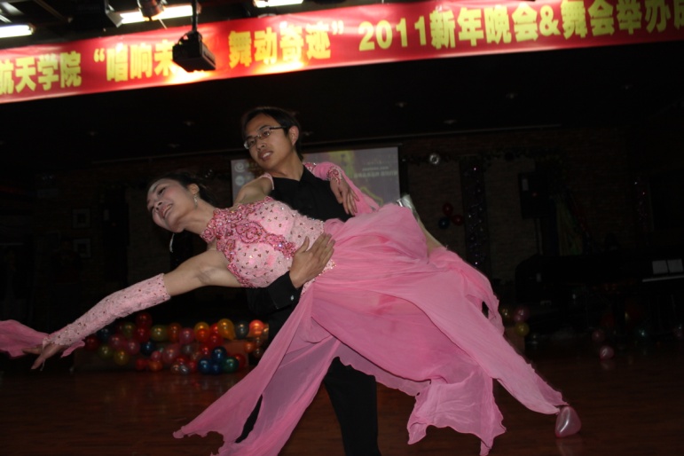 在第一篇章中,節目和游戲穿插進行,同學們各展其才,為在場觀眾奉上了藝術饕餮。航院尹琴同學的《刺鳥》有如天籟,臺下的粉絲紛紛獻上鮮花。捧腹給力的小品《武林外傳之淘寶初創》中惟妙惟肖的表演給觀眾帶來陣陣歡笑。浪漫的法國之聲《東京et巴黎》演繹了別樣的異域風情,抽獎環節和游戲環節把晚會一次次推向高潮,驚艷的海豚音Opera贏得了臺下觀眾的陣陣掌聲,高雅的鋼琴獨奏讓大家共同領略了那唯美的音樂世界,航院馮瓊華同學及其舞伴王燕青同學帶來的曼妙流轉的華爾茲《印象西湖雨》更是驚艷全場,壓軸整個文藝表演。第二篇章的狂歡舞會在進行了兩個刺激、好玩的游戲后,以兔子舞狂歡結束。