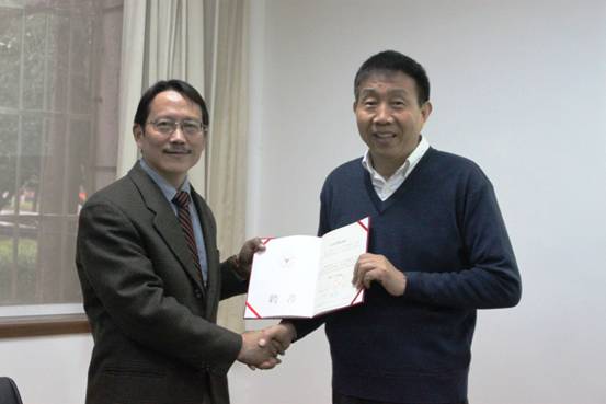 鄒鴻生教授為張統一教授頒發聘書