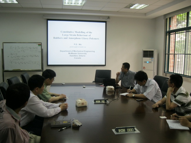 浙大力學(xué)系系友、加拿大McMaster大學(xué)機(jī)械系吳沛東教授于6月10-16日在杭州參加了第二屆材料力學(xué)性質(zhì)國(guó)際會(huì)議(ICMPM 2011),并應(yīng)浙江大學(xué)軟物質(zhì)科學(xué)研究中心與應(yīng)用力學(xué)研究所的聯(lián)合邀于6月16日上午在教五-212會(huì)議室作了題為“Constitutive Modelling of the Large Strain Behaviour of Rubbers and Amorphous Glassy Polymers”的學(xué)術(shù)報(bào)告。