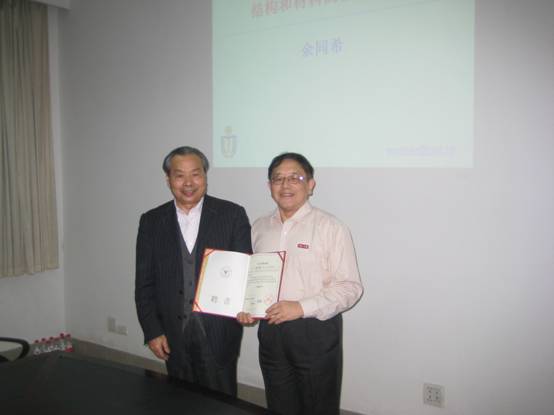 2011年11月14日下午,香港科技大學余同希教授受聘浙江大學包玉剛講座教授儀式暨學術報告會在應用力學研究所會議室舉行。授聘儀式由航空航天學院副院長黃志龍教授主持,應用力學研究所朱位秋院士、丁皓江教授、陳偉球教授、徐博侯教授、陶偉明教授等師生代表參加了儀式。黃志龍教授首先介紹了余同希教授的簡歷和學術成就,并對余同希教授表示熱烈歡迎。朱位秋院士為余同希教授佩戴?;?,并頒發了浙江大學包玉剛講座教授聘書。儀式結束后,余同希教授做了題為“結構和材料的能量吸收”的精彩學術報告,在與會師生中引起了熱烈的討論和反響。
