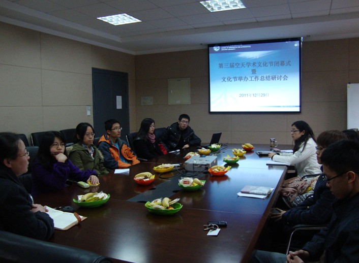 2012年12月29日下午,航空航天學(xué)院第三屆空天學(xué)術(shù)文化節(jié)閉幕式暨文化節(jié)舉辦工作總結(jié)研討會(huì)在玉泉校區(qū)教五-326舉行。出席閉幕式和研討會(huì)的有學(xué)院黨委副書記謝紅梅老師、團(tuán)委書記戴志潛老師以及近三屆學(xué)院研究生會(huì)主席團(tuán)和學(xué)生會(huì)主席團(tuán)的部分成員。