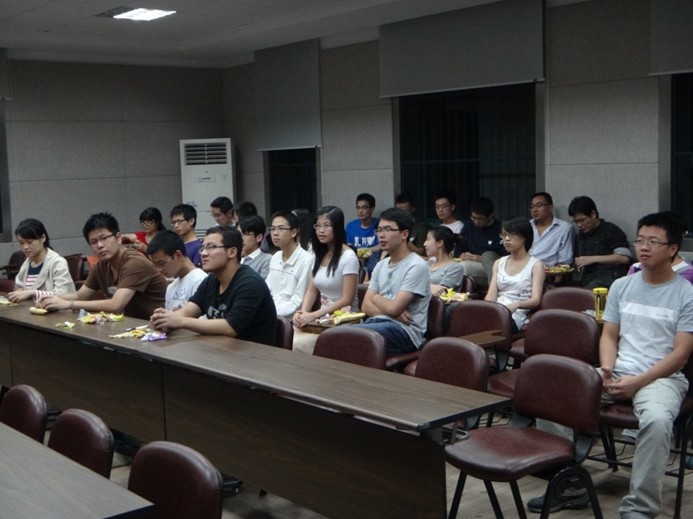 在班會上,新老生打開心扉,展示自我,大家互相交流,彼此熟悉。德育老師徐彥對大家在學(xué)習(xí)、科研和生活上寄予了新學(xué)期的殷切希望(圖1)。隨后,通過本人自薦,無記名投票的方式,班會選舉出朱美軍、張潮、趙蘇蘇、唐麗君為新一屆班長、心理委員、體育委員和宣傳委員。大家還就班級第一次出游活動進(jìn)行討論。