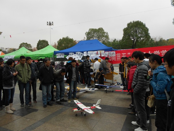 2012年12月15日,首屆浙江大學(xué) “航院杯”小飛機(jī)比賽現(xiàn)場報名活動在文化廣場拉開帷幕,經(jīng)過我們連夜奮戰(zhàn)到凌晨兩點(diǎn),終于將我們的油動飛機(jī)模型組裝起來了,形成了龐大的飛機(jī)群。甲醇油動教練機(jī)機(jī)都可以順利點(diǎn)火,經(jīng)必要的調(diào)試可以正常飛行,這對以后航模隊(duì)的飛行訓(xùn)練順利開展大有好處。