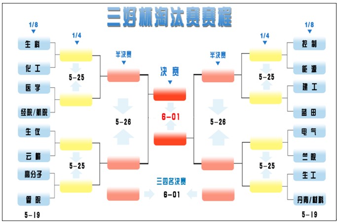 本屆杯賽的淘汰賽對陣形勢,附加賽“航院/經院”的勝者將作為十六強對陣醫學。