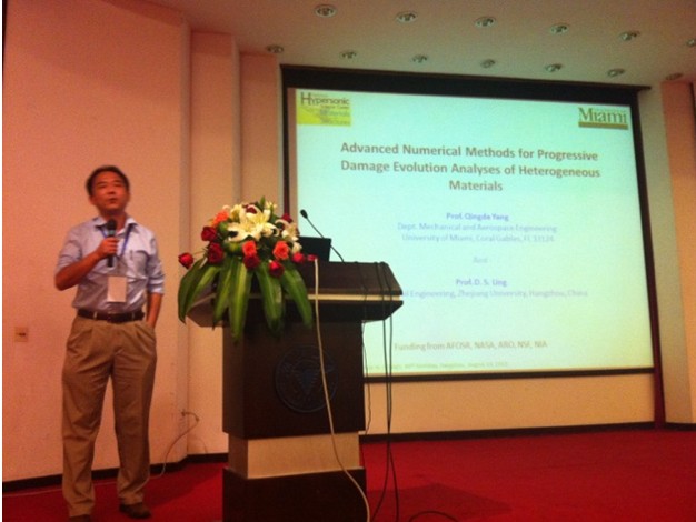 應(yīng)浙江大學(xué)應(yīng)用力學(xué)研究所的邀請,美國邁阿密大學(xué)機(jī)械與航空工程系楊慶大教授來我院應(yīng)力所訪問,參加了在浙大玉泉校區(qū)邵逸夫科學(xué)館舉辦的“固體力學(xué)及其應(yīng)用學(xué)術(shù)研討會”,并作了題為“Advanced numerical methods for progressive damage evolution analyses of heterogeneous materials”的學(xué)術(shù)報告。