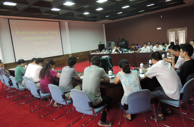為進(jìn)一步貫徹黨中央和學(xué)校關(guān)于開(kāi)展黨的群眾路線(xiàn)教育實(shí)踐活動(dòng)的相關(guān)要求,明確學(xué)院下一階段的工作思路和方向,9月13日上午,航空航天學(xué)院在玉泉邵科館211室召開(kāi)院新一屆領(lǐng)導(dǎo)班子成立后首次務(wù)虛工作會(huì)暨黨的群眾路線(xiàn)教育實(shí)踐活動(dòng)意見(jiàn)征求會(huì)。學(xué)院黨委書(shū)記吳丹青,副院長(zhǎng)邵雪明、黃志龍、金仲和,黨委副書(shū)記戴志潛,各系所、中心、實(shí)驗(yàn)室主要負(fù)責(zé)人,教工支部書(shū)記,正高級(jí)職稱(chēng)人員以及學(xué)院行政人員30余人參加會(huì)議,會(huì)議由院黨委書(shū)記吳丹青主持。