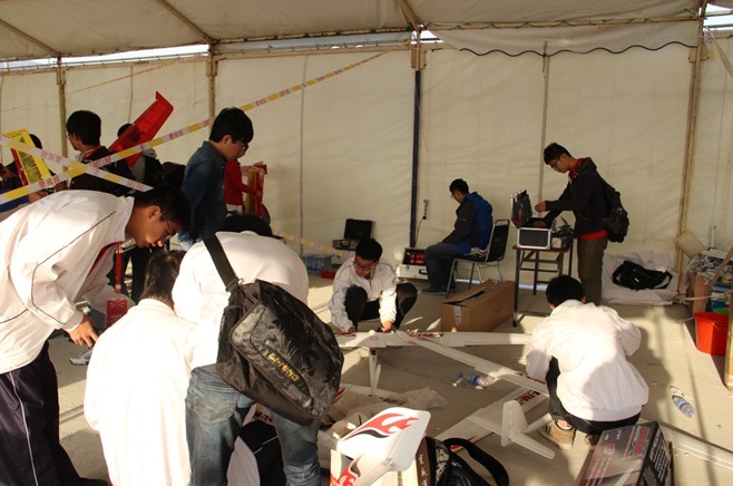 對地偵查是本次比賽中我隊比較遺憾的比賽項目。比賽訓練期間,偵查飛機的性能一度出現問題,但在隊員們的努力克服下,還是將飛機調整到了較好的狀態。意外的是,在比賽期間,我隊的偵查設備受到其他一支隊伍因違規操作的造成的干擾,耽誤了時間。最終在近60支隊伍中排在了中間。