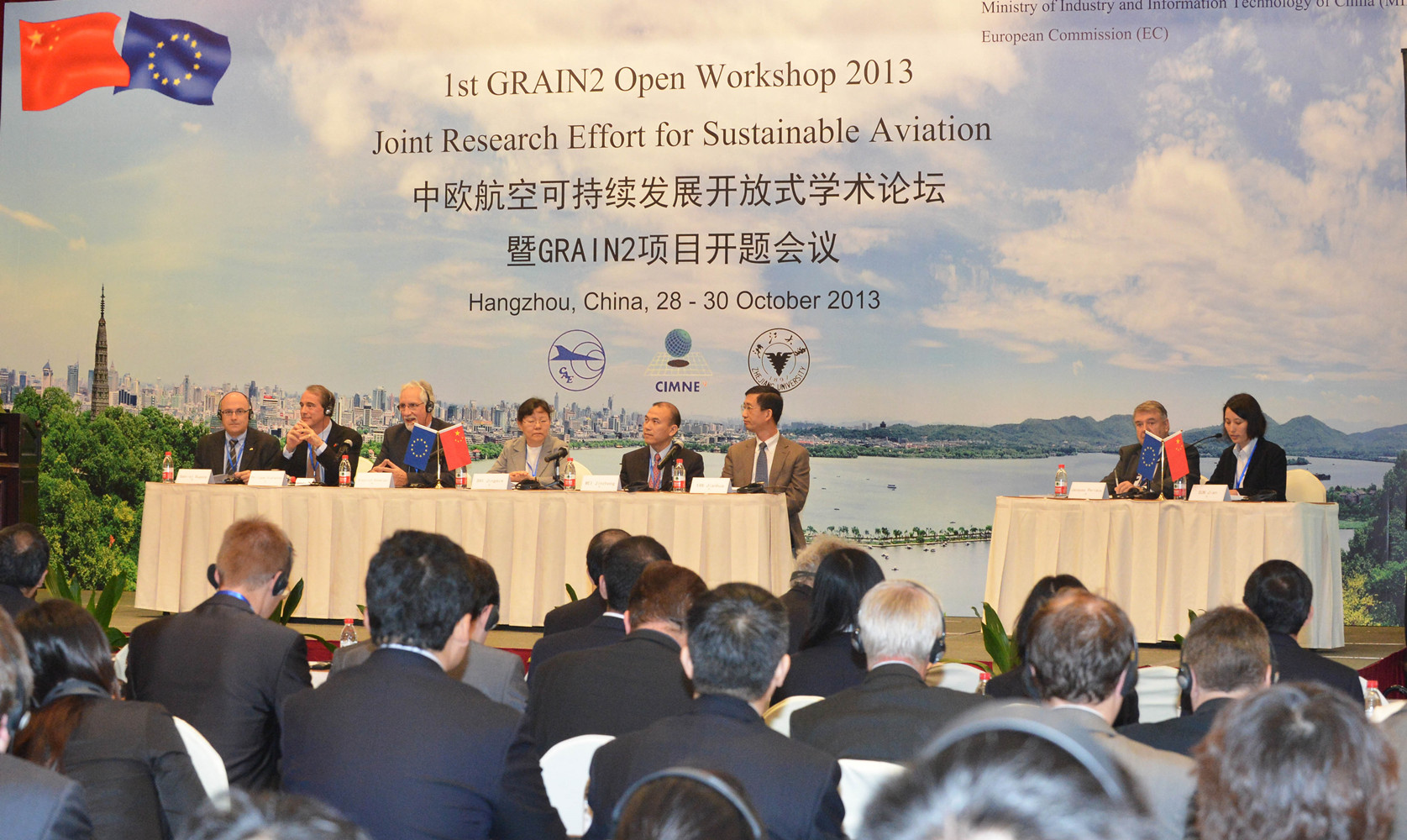首屆GRAIN2開放學術研討會為期兩天,由大會報告、圓桌會議、分會報告組成。大會報告分歐盟第七框架下的中歐聯合研究活動、可持續航空發展支撐技術、數值方法和流動控制三個部分。并行分會按照推進相關的綠色技術、減阻和降低二氧化碳排放的技術、降噪技術、綠色材料技術、綠色智能結構技術、面向綠色空中運輸的導航和空中交通管理為六個專題展開。圓桌會議提出了六個中歐航空合作項目建議,展望建立綠色空中運輸系統的合作研究框架。