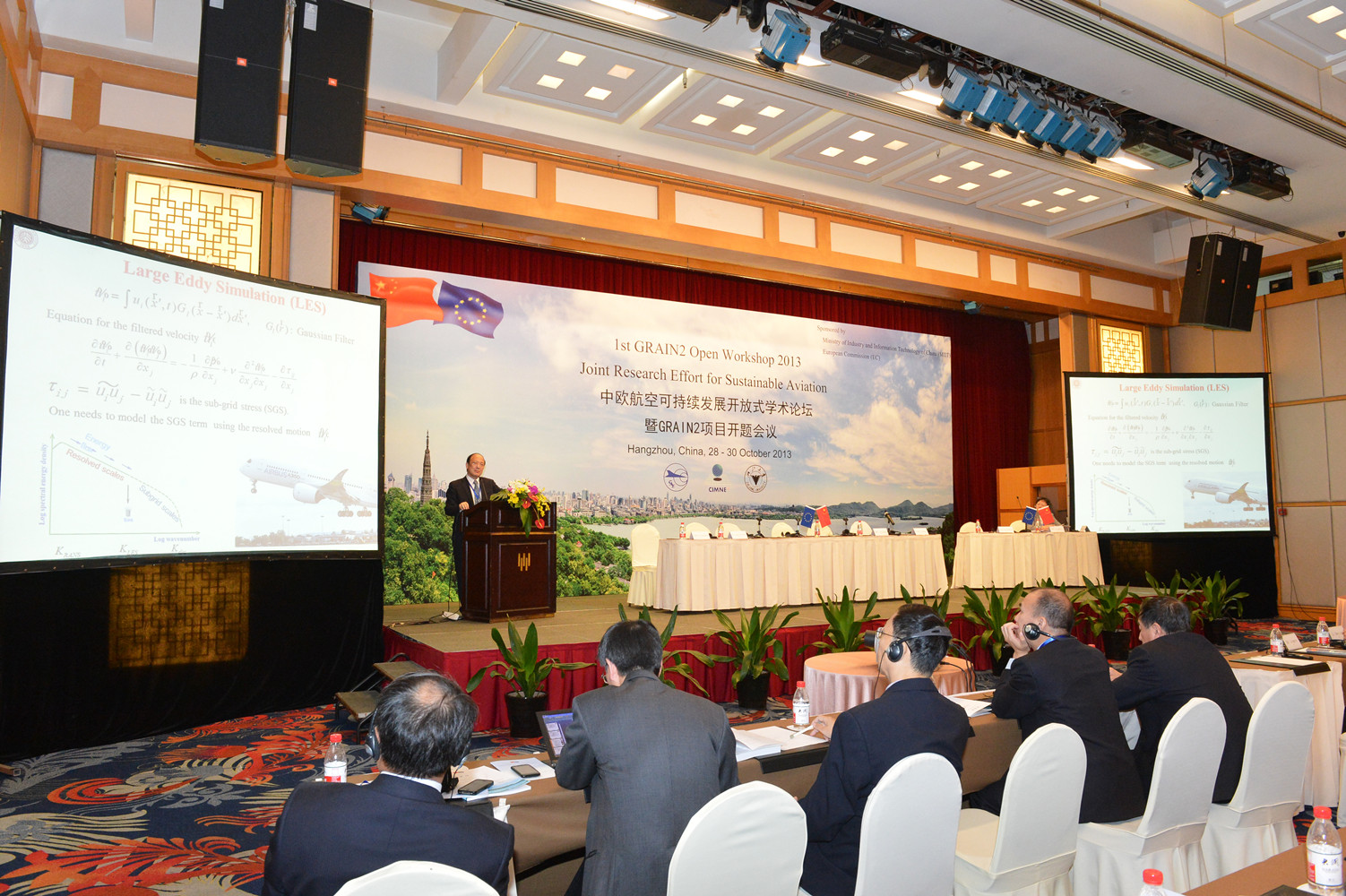 浙江大學黨委副書記嚴建華、歐盟駐華使團科技參贊Philippe Vialatte、中國工業和信息化部裝備工業司航空處調研員石靖敏、工程中數值方法國際中心(西班牙)教授Gabrel Bugeda、中國航空研究院常務副院長魏金鐘參加會議并致開幕辭。開幕式由中國航空研究院處長孫健和工程中數值方法國際中心(西班牙)教授Jacques Periaux共同主持。中國航空研究院副院長華俊、空客北京工程技術中心總經理Pedro Fernández-Rodríguez、北京大學副校長陳十一做了引言報告。