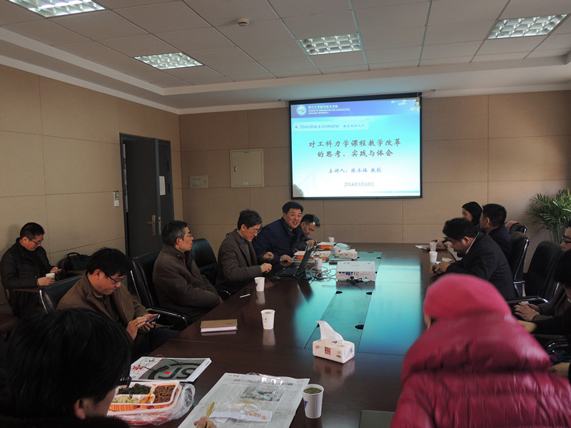 2014年3月10日中午,航空航天學院“教與學”系列教學論壇第二次活動在玉泉校區(qū)第五教學樓326會議室順利舉行。此次論壇活動邀請了浙江大學建筑工程學院陳水福教授作題為“對工科力學課程教學改革的思考、實踐與體會”的主題發(fā)言,全院20余名一線教師參加了本次交流。