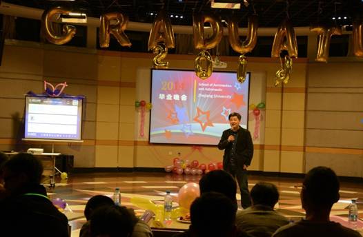 “后青春期的詩”航空航天學院畢業生晚會于3月23日晚18:30在永謙活動中心三樓多功能活動廳隆重舉行。航空航天學院院黨委書記吳丹青,副院長邵雪明、黃志龍,院黨委副書記戴志潛,團委副書記秦婧雅,流體所副所長王燦星老師,應力所固體力學實驗室主任羅銀淼老師以及航空航天學院全體學生共同觀看了這場精彩的晚會。副院長邵雪明老師為此次晚會致辭,表達了他對畢業生的美好愿望以及對在校生的殷切期望。晚會分為“青春活力”、“似水年華”、“終點起點”三個篇章,并穿插游戲互動環節。