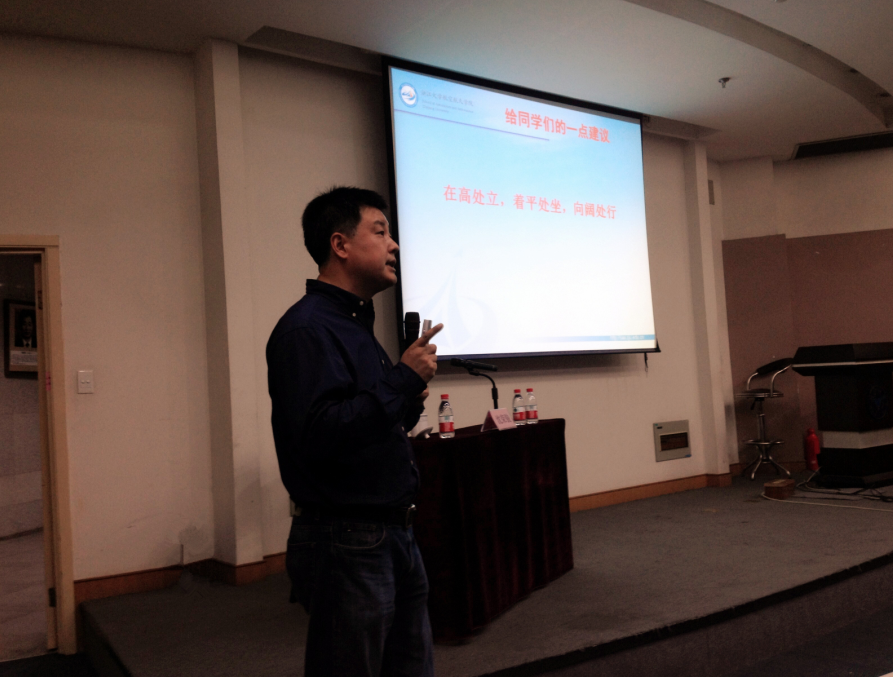 之后邵老師以“在高處立、著平處坐、向闊處行”為主題,以竺可楨老校長的兩個提問出發,對新生同學在學業、生活以及人生規劃等方面提出希望與要求,并給予了殷切的期望。邵老師著重強調了學習對于學生的重要性,也以現實的例子告誡各位新生同學一定要珍惜當下,努力學習,不負青春。