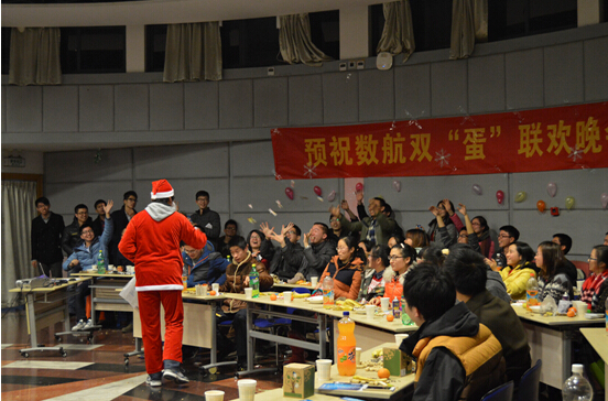 2014年12月25日晚上7:00,由我院和數學系共同舉辦的《數航雙“蛋”聯歡晚會》在浙江大學玉泉校區永謙活動中心B座三樓多功能活動廳隆重舉行。出席本次晚會的嘉賓有:航空航天學院團委書記秦婧雅老師、數學系團委書記蔡云老師、輔導員林斌斌老師、信息與電子工程學系研博會主席程東、能源工程學院研博會主席朱子欽、生物醫學工程與儀器科學學院研博會副主席王鋆川、高分子科學與工程學系研會副主席何藹、機械工程學院博會主席代建俊、控制科學與工程學系研博會主席馬信達等。來自兩院系的近三百名學生參加了聯歡活動。