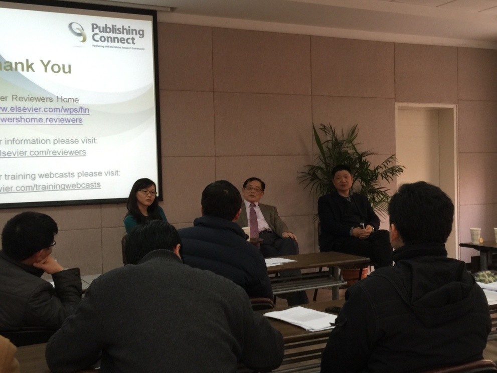 張靖博士首先從出版業本身出發,對出版業的歷史和目前狀況做了回顧,并簡單對期刊審稿現狀、審稿人扮演的角色、以及如何做一個稱職的審稿人進行了介紹。余同希教授則從主編的角度對審稿過程中許多大家關心的問題進行了解釋,如審稿周期、審稿人的關注點、以及主編如何做出決定等等。在茶歇之后,余教授和張博士又與在座的老師和同學們進行了面對面的交流,并對大家提出的問題進行了詳細的解惑。余教授還以自己編輯過的兩篇論文為例對當時的審稿意見進行了逐句的講解,籍此說明了審稿的要點。