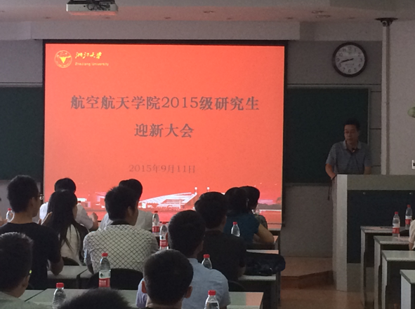 9月11日上午,玉泉校區教七-306教室里熱情洋溢,濟濟一堂。航空航天學院2015年秋季研究生迎新大會在這里隆重舉行。院黨委書記吳丹青老師,院副院長黃志龍老師,院黨委副書記戴志潛老師,各研究所主要負責人,以及教學管理科、學工辦老師出席了會議,全體2015級碩博研究生新生和部分老生代表參加了迎新大會。會議由戴志潛副書記主持,黃志龍副院長在大會上發表了熱情洋溢的迎新致辭,各研究所主要負責人也相繼對各所情況及研究重點做了精彩的報告。