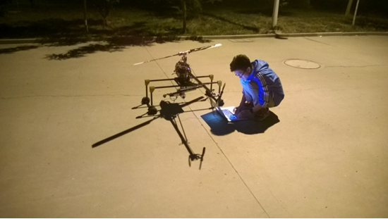 28日,由李源浩、胡曉畑和郭子正組成的垂直起降載運機組參加了同樣激烈的比賽。此項目目標為在規(guī)定時間內(nèi),利用限制的電源將乒乓球運送到目標區(qū)。各隊飛行器極具創(chuàng)意,不少隊伍精湛的飛行技術(shù)更是博得全場喝彩。我隊選手用自制的四旋翼飛行器,在上百組隊伍奪得了三等獎的好成績。