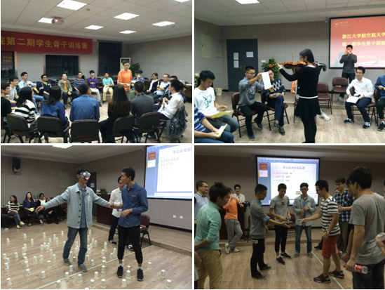 為加強學院本研學生骨干之間的情感與交流,培養合作意識與團隊精神,增強學生干部整體的凝聚力和向心力,訓練營在開營儀式后安排了以溝通與合作為主題的我愛浙航Family的主題團輔。團體輔導分為暖身階段、活動階段和結束階段三部分。在建立團隊契約和熱身游戲的暖身環節后,通過大家都是一朵花、滾雪球、 盲人過雷陣、終極版紙牌游戲等團體輔導活動,讓營員們體會團體和孤獨,增進彼此相識與了解,學會相互信任與依托,學會溝通合作共同解決問題。在結束階段,營員們輪流進行總結與交流反思,為團隊融合與發展奠定良好基礎。