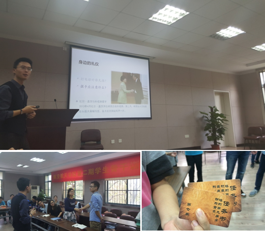 11月7日,學生骨干訓練營邀請了公共管理學院團委書記卓亨逵老師和動物科學學院陳衛老師分別作了“德禮相濟 博雅修身—學生干部禮儀”和“團隊建設與溝通”的專題培訓。兩位老師用輕松的體驗式培訓方式,親身示范和學生互動,達到了很好的效果。