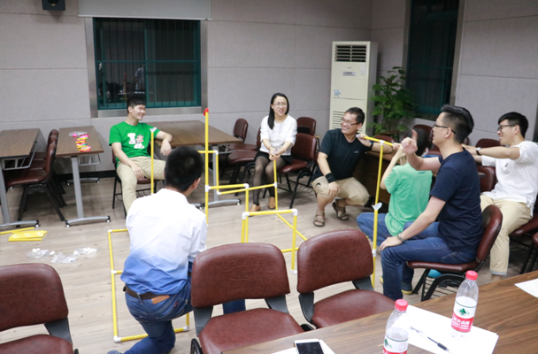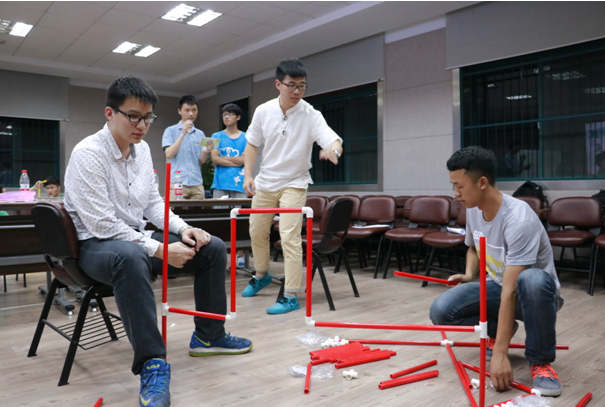 隨后開展的團隊輔導活動“呼吸的力量”,旨在促進團隊溝通與協作。營員們平均分成兩隊,每隊分成兩個小組――領導組與執行組,領導組會得到一張呼吸機的圖紙,如何向其他隊員描述這張圖紙的內容,以便讓其他隊員根據圖紙搭建好呼吸機,考驗著團隊內部的溝通能力。另一方面,每小組得到的材料是有限的,如何合理分配有限資源,遇到問題又如何調整戰略方向,這又會是一大考驗。每個小組都出色地完成了任務,團體輔導圓滿成功。團輔教練員對本次團輔進行了總結,本次團輔體驗不同的溝通模式及不同位面溝通之間的沖突,建立良好的工作習慣流程,培養積極的心態,高度的責任感,培養高度契合執行力,體會團隊合力的力量。