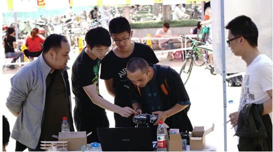 同學們可以戴上視頻眼鏡,航模隊隊員操作飛行器升空,將飛機上采集的圖像發送到眼鏡上。并因地制宜的進行一些飛行表演,同時排放專業組的樣機,發放關于航模隊夏季納新的安排。