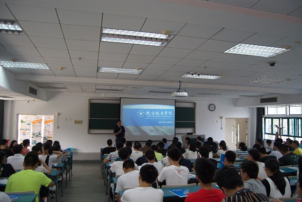 2016年9月25日上午,2016級工科實驗班(航空航天與過程裝備)類專業宣講會在紫金港東二-102舉辦。此次宣講會旨在全方位介紹大類內工程力學、飛行器設計與工程、過程裝備與控制三個專業情況,并由各專業負責人為同學們詳細介紹本專業的發展現狀、研究方向和培養計劃,以便幫助2016級航過大類學生確認主修專業。航空航天學院常務副院長邵雪明教授、飛行器設計與工程專業負責人陳偉芳教授、工程力學專業趙沛副教授、1604班班主任謝芳芳老師、學院教學科科長何姍老師、周利霞老師及學工辦秦婧雅老師出席了本次活動。