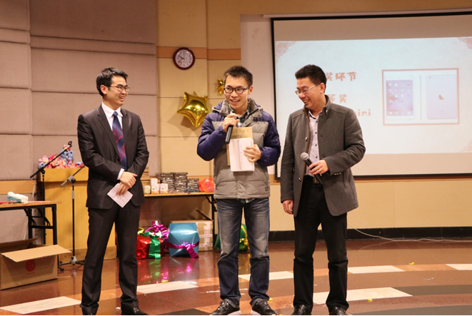 為了調(diào)動(dòng)師生們的積極性,增加晚會(huì)的趣味性,主辦方還設(shè)置了游戲環(huán)節(jié)、微信上墻互動(dòng)以及抽獎(jiǎng)環(huán)節(jié)。同學(xué)們?cè)谖⑿艍ι蠒乘裕虬l(fā)表自己對(duì)節(jié)目的感想,或分享晚會(huì)以及新年的喜悅,互動(dòng)討論氣氛熱烈。晚會(huì)現(xiàn)場(chǎng)還抽取了一個(gè)一等獎(jiǎng)ipad mini,兩個(gè)二等獎(jiǎng)kindle,三個(gè)三等獎(jiǎng)Sony耳機(jī),除了這些大獎(jiǎng),主辦方還準(zhǔn)備了娃娃公仔、筆記本、熱水袋、小臺(tái)燈、水杯等豐富的小獎(jiǎng)品作為新年禮物送給幸運(yùn)觀眾們。