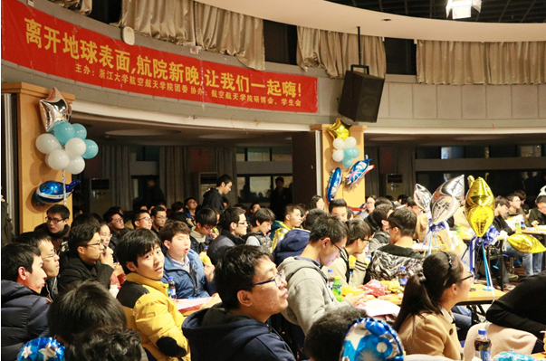 2016年12月26日晚七點(diǎn),由浙江大學(xué)航空航天學(xué)院團(tuán)委主辦,航院研博會(huì)、學(xué)生會(huì)協(xié)辦的“離開地球表面”主題迎新晚會(huì)在玉泉校區(qū)永謙學(xué)生活動(dòng)中心三樓多功能廳舉辦。晚會(huì)得到了學(xué)院廣大師生的支持,現(xiàn)場(chǎng)座無虛席。