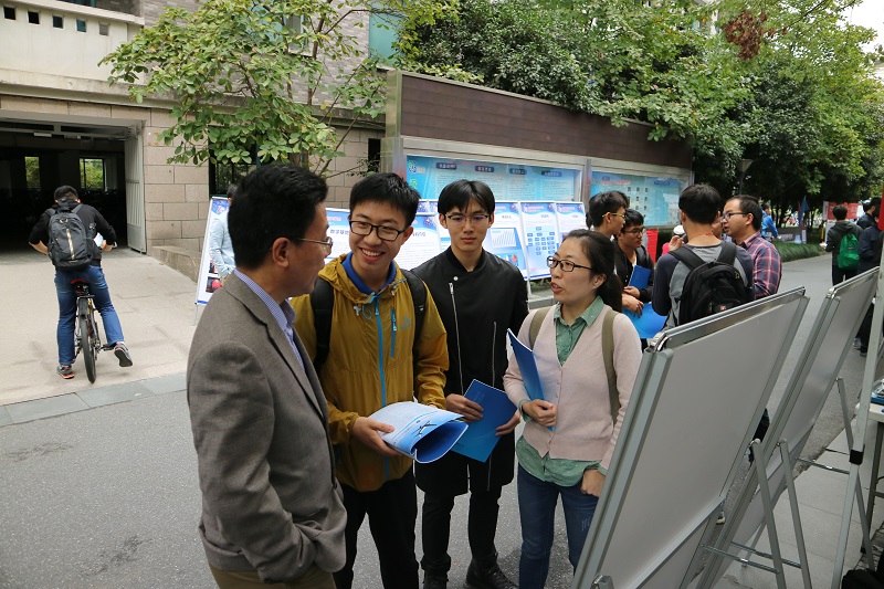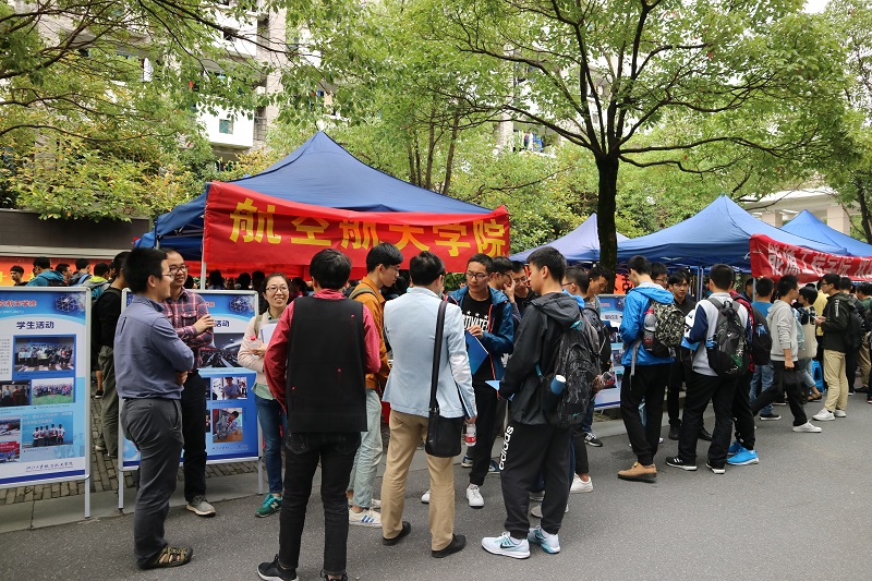 2017年10月13日中午,航空航天學院在藍田學園園區內舉辦了2017級新生主修專業咨詢會。航空航天學院黨委副書記戴志潛老師、工程力學專業負責人王惠明教授、飛行器設計專業負責人陳偉芳教授,各專業青年骨干教師陳建軍教授、李華副教授、金肖玲副教授、潘定一副教授、教學管理科周利霞老師以及大三大四優秀學長組成的咨詢團隊十余人親臨現場,為2017級新生答疑解惑,指導他們做好主修專業確認。此次咨詢會為新生提供了與專業老師、學長近距離咨詢交流的機會,幫助新生進一步了解學院情況及工程力學和飛行器設計與工程兩個專業的情況,以便新生能夠在全面了解專業的基礎上,做出理性的主修專業選擇。來咨詢的既有航空航天與過程裝備大類的同學,也有其他大類的同學,同學們不僅咨詢了專業的課程學習、畢業后未來的發展方向,還了解了學院老師從事的科研情況,在場的老師同學都做了耐心細致地解答,也歡迎同學們到玉泉校區實驗室進行實地參觀。
