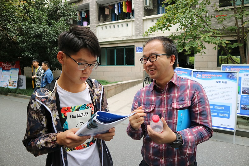 2017年10月13日中午,航空航天學院在藍田學園園區內舉辦了2017級新生主修專業咨詢會。航空航天學院黨委副書記戴志潛老師、工程力學專業負責人王惠明教授、飛行器設計專業負責人陳偉芳教授,各專業青年骨干教師陳建軍教授、李華副教授、金肖玲副教授、潘定一副教授、教學管理科周利霞老師以及大三大四優秀學長組成的咨詢團隊十余人親臨現場,為2017級新生答疑解惑,指導他們做好主修專業確認。此次咨詢會為新生提供了與專業老師、學長近距離咨詢交流的機會,幫助新生進一步了解學院情況及工程力學和飛行器設計與工程兩個專業的情況,以便新生能夠在全面了解專業的基礎上,做出理性的主修專業選擇。來咨詢的既有航空航天與過程裝備大類的同學,也有其他大類的同學,同學們不僅咨詢了專業的課程學習、畢業后未來的發展方向,還了解了學院老師從事的科研情況,在場的老師同學都做了耐心細致地解答,也歡迎同學們到玉泉校區實驗室進行實地參觀。