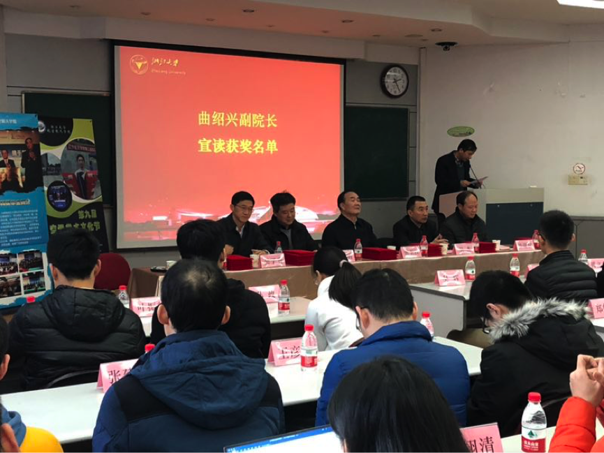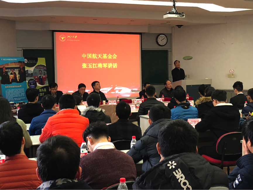 2017年12月22日下午,浙江大學(xué)航空航天學(xué)院第八屆中國(guó)航天學(xué)科獎(jiǎng)學(xué)金頒獎(jiǎng)典禮暨第九屆空天學(xué)術(shù)文化節(jié)閉幕式在浙大玉泉校區(qū)教七306隆重舉行。本次頒獎(jiǎng)典禮由學(xué)院黨委副書記戴志潛主持。中國(guó)航天基金會(huì)專家咨詢委員會(huì)主任張玉江將軍、中國(guó)航天基金會(huì)秘書長(zhǎng)助理吳杰大校、中國(guó)航天基金會(huì)專家咨詢委員會(huì)主任秘書王強(qiáng)、浙江大學(xué)黨委學(xué)工部副部長(zhǎng)吳子貴、浙江大學(xué)航空航天學(xué)院常務(wù)副院長(zhǎng)邵雪明、浙江大學(xué)航空航天學(xué)院黨委書記畢建權(quán)、浙江大學(xué)航空航天學(xué)院副院長(zhǎng)曲紹興老師等人出席了頒獎(jiǎng)儀式。參加本次典禮的還有第八屆中國(guó)航天學(xué)科獎(jiǎng)學(xué)金獲得者以及學(xué)院本科生代表、研究生代表等。