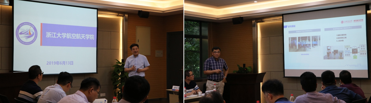 隨后,雙方就學院情況進行介紹。學院常務副院長邵雪明圍繞歷史沿革、組織架構、人才培養、師資隊伍、團隊建設、科學研究、國際交流、學科發展、“雙一流”建設等方面,詳細闡釋學院發展歷程和現狀,分享學院建設的相關思考和經驗。上交航院常務副院長吳樹范從歷史發展、師資力量、機構設置、學科方向、研究領域、科學研究、人才培養、全球視野等方面詳實介紹了學院概況,并凝練了發展的五個要點,即“堅持價值引領和培育空天情懷、堅持對接國家重大戰略需求、堅持內涵發展、堅持創新突破、堅持國際化辦學”。