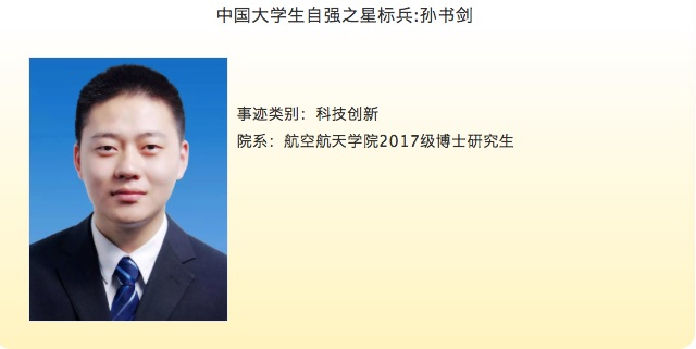 孫書劍,浙江大學航空航天學院2017級博士研究生,浙江省向上向善好青年、浙江省國家獎學金獲得者典型事跡巡回報告團成員、“優秀學長進思政課堂”主講人,長期堅持在思想引領和科普教育第一線。個人事跡被中國青年報、浙江大學官微等多個校內外權威媒體專題報道。