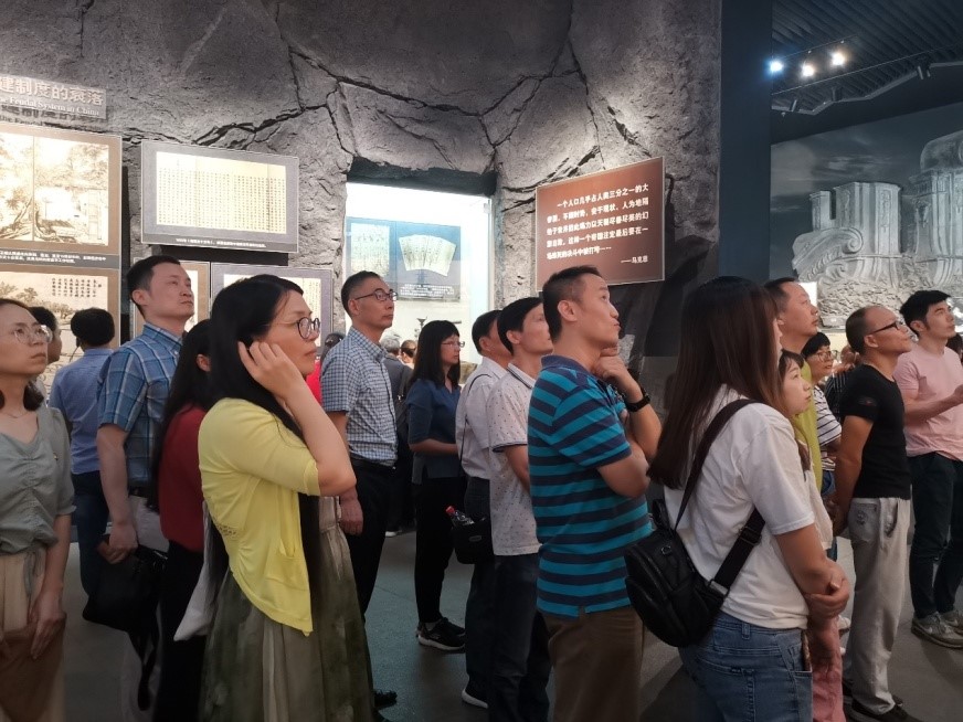 大家懷著莊嚴肅穆的心情認真觀看每一幅圖片,靜靜沉思,默默體悟,感受歷史場景,聆聽時光回響,追憶了中國共產黨在白色恐怖下,艱難誕生、不斷發展、日漸壯大的風雨歲月,更加深入地了解中國共產黨自建黨以來走過的輝煌歷程。那一幅幅歷史畫卷,一段段光輝往事,無不訴說著中國共產黨的成立對中國革命至關重要的作用。我黨將共產主義精神化作星火,燎遍中華大地,帶領工人階級進行了艱苦卓絕的革命斗爭,徹底推翻了壓在人民頭上的帝國主義、官僚主義和封建主義三座大山,取得了光榮的革命勝利,讓人民獲得了解放,讓祖國走向富強。