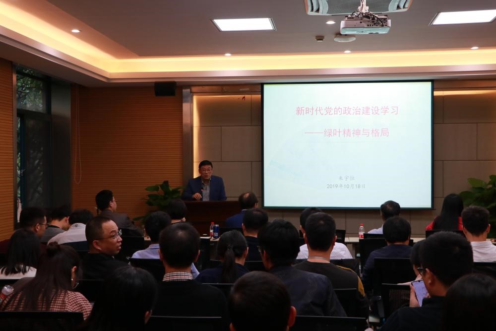 隨后,總務(wù)處黨支部書記朱宇恒上臺(tái)講解了主題為“新時(shí)代黨的政治建設(shè)學(xué)習(xí)——綠葉精神與格局的黨課報(bào)告,朱老師強(qiáng)調(diào)了新時(shí)代黨的政治建設(shè)的首要任務(wù)和舉措,要堅(jiān)定“兩個(gè)維護(hù)”,做到增強(qiáng)“四個(gè)意識(shí)”、堅(jiān)定“四個(gè)自信”、堅(jiān)持“四個(gè)服從”;同時(shí)強(qiáng)調(diào)了新時(shí)代黨的政治建設(shè)的統(tǒng)領(lǐng)地位。在最后,朱老師提倡在工作學(xué)習(xí)中我們要堅(jiān)持綠葉精神,樂于奉獻(xiàn),忠誠擔(dān)當(dāng)。