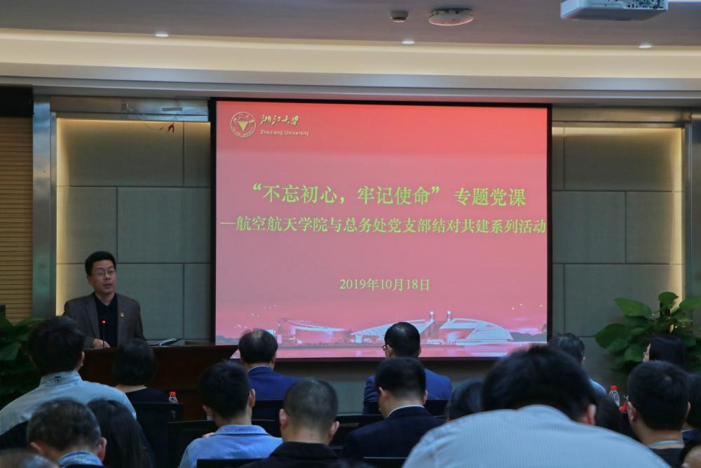 為學習貫徹習近平總書記在“不忘初心、牢記使命”主題教育工作會議的重要講話精神,深刻領會總書記關于黨的初心和使命的重要論述,10月18日下午,“不忘初心,牢記使命”專題黨課活動在教五333會議室舉行。此次活動是航空航天學院與總務處黨支部結對共建系列活動的重要內容。活動邀請總務處處長吳紅瑛、總務處黨支部書記朱宇恒、航空航天學院黨委書記畢建權、航空航天學院黨委副書記戴志潛和流體所研究生黨支部書記劉炳瑞上臺為黨員同志講黨課。本次專題黨課由戴志潛主持,三個黨支部全體黨員、預備黨員和積極分子80余人參加了本次活動。