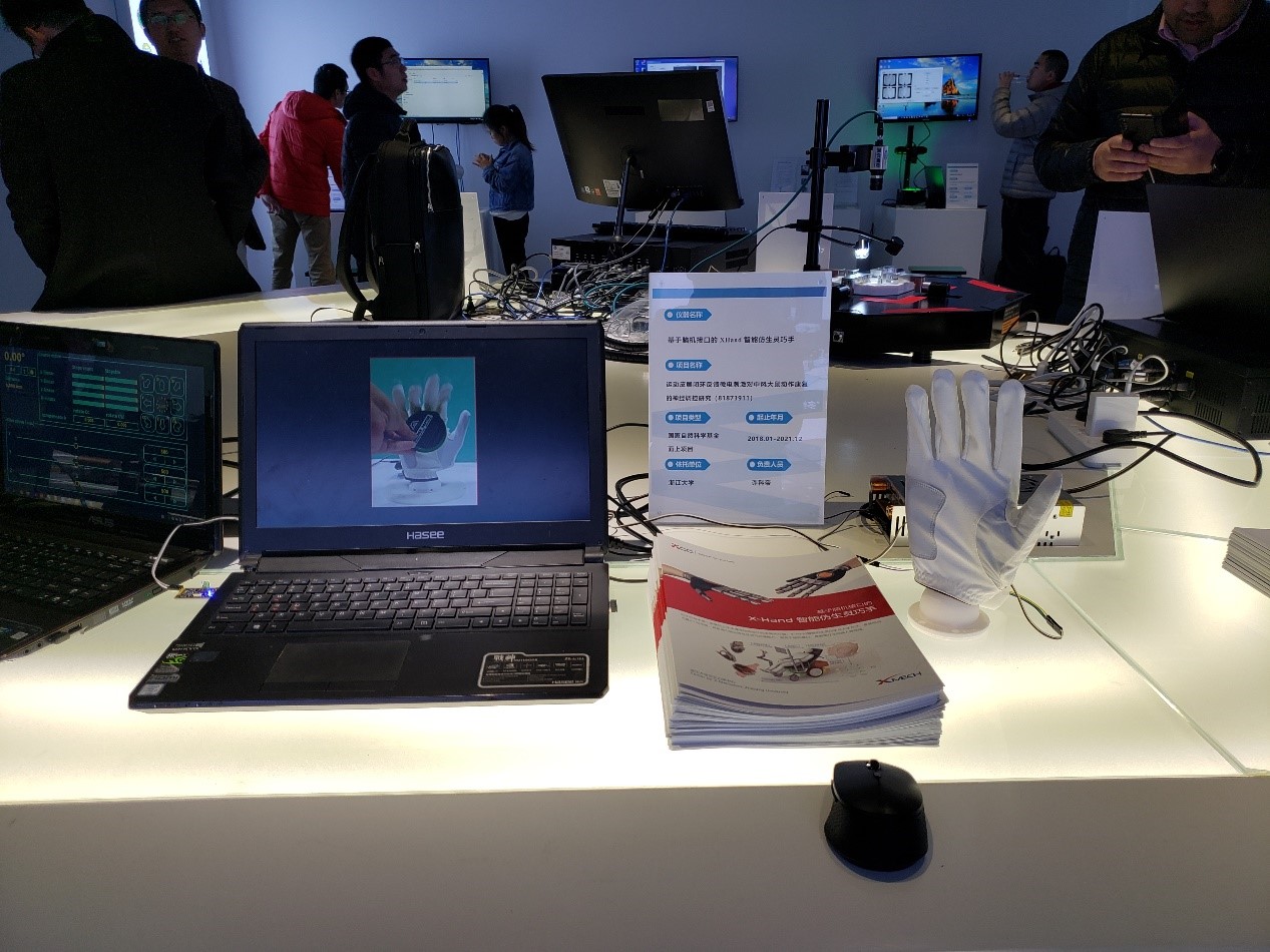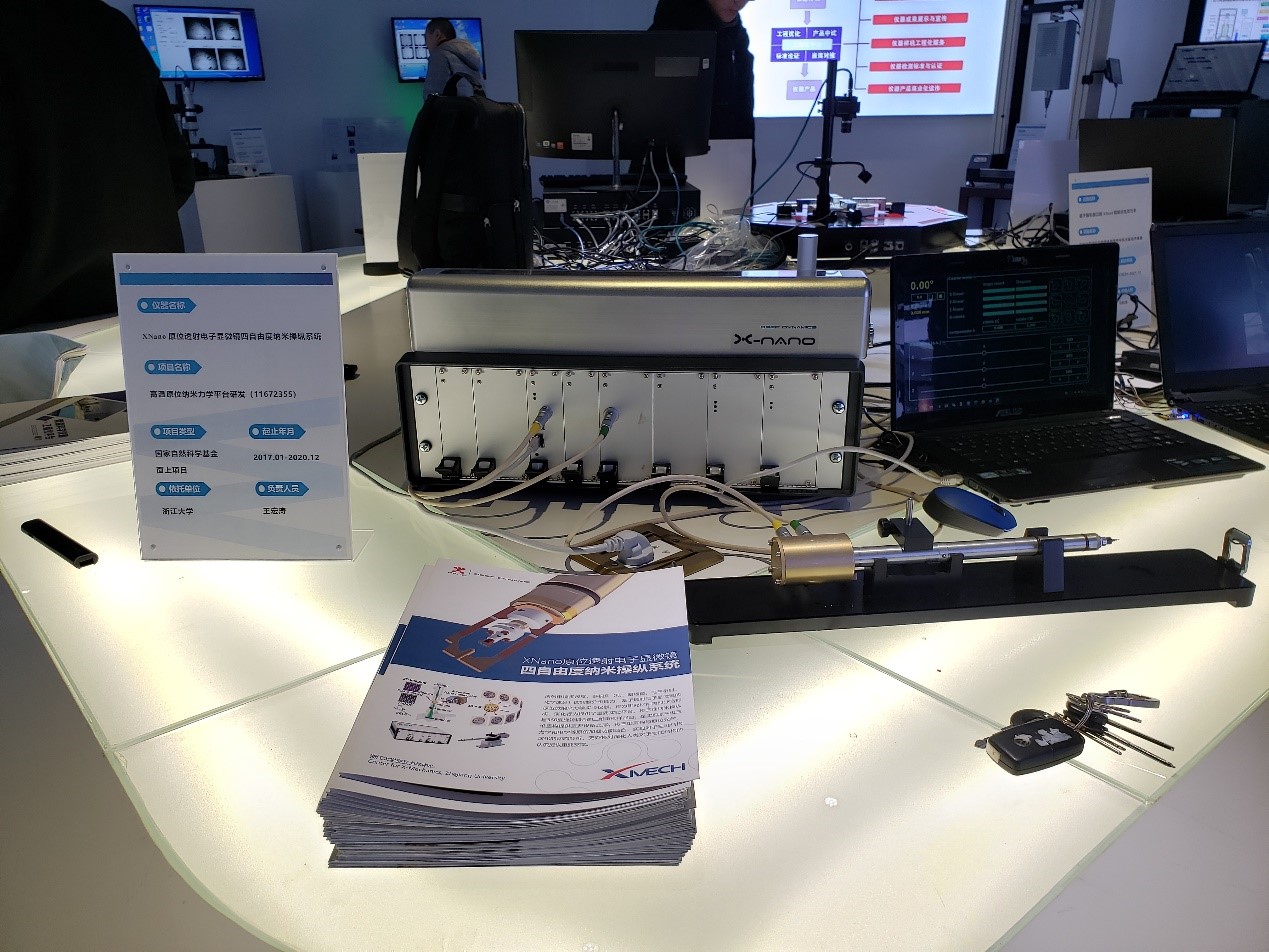 浙江大學交叉力學中心王宏濤教授率團隊于2019年11月29日參加了在浙江嘉興舉行的國家自然科學基金杰出科學家浙江行暨科學儀器類項目成果展。本次活動促進了基礎研究成果落地與轉化,為國家自然科學基金資助產出與產業發展之間架設了橋梁。交叉力學中心精心研發的XNano原位透射電子顯微鏡四自由度納米操縱系統和基于腦機接口的XHand智能仿生靈巧手兩臺設備參加了此次成果展。