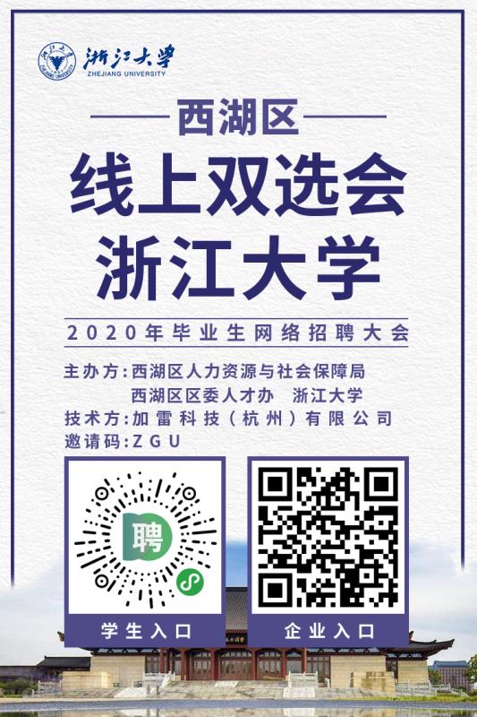 由西湖區人社局、區人才辦與浙江大學就業指導與服務中心聯合舉辦,依托“招聘匯”平臺正式推出西湖區線上雙選會(浙江大學專場)活動。