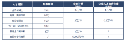 2.企業人才集合年金 博士給予1萬/年,碩士及雙一流本科給予0.8萬/年,補貼5年。