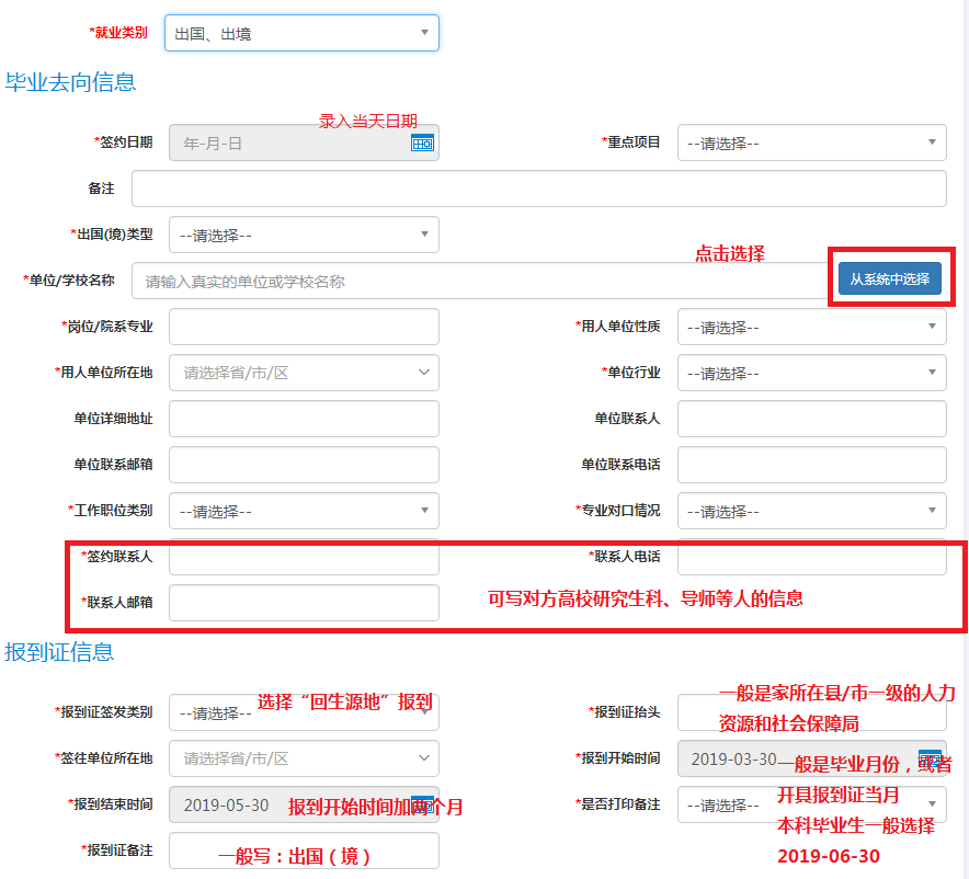 出國(境)(包括攻讀研究生、做博士后)、境內(nèi)升學(xué)(考研、保研)、國內(nèi)做博士后的同學(xué),雖然不簽訂就業(yè)三方協(xié)議,但仍需將畢業(yè)去向、檔案寄送、戶口遷移等信息錄入管理系統(tǒng),以便后續(xù)開具報到證(境內(nèi)升學(xué)無需開報到證)、寄送檔案等