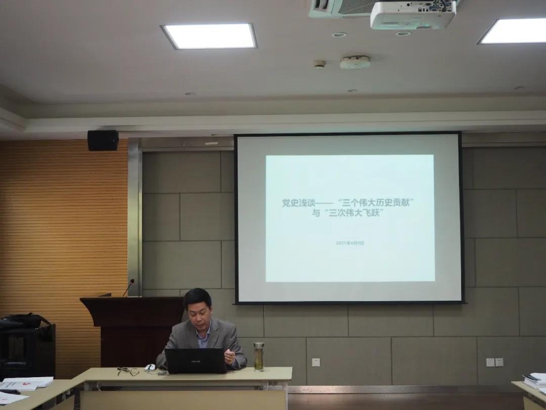 在實務培訓和工作部署后,邀請學院黨委副書記戴志潛作主題為“三個偉大歷史貢獻”與“三次偉大飛躍”的主題黨史教育專題黨課。他闡述了中國共產黨在波瀾壯闊的百年歷史中,如何推進理論創新,如何實踐初心使命等一系列重大理論和現實問題,讓大家深切地感受到中國共產黨百年歷史是不斷推進馬克思主義中國化的歷史,也是不斷運用馬克思主義中國化成果指導中國革命、建設和改革開放偉大實踐的歷史。