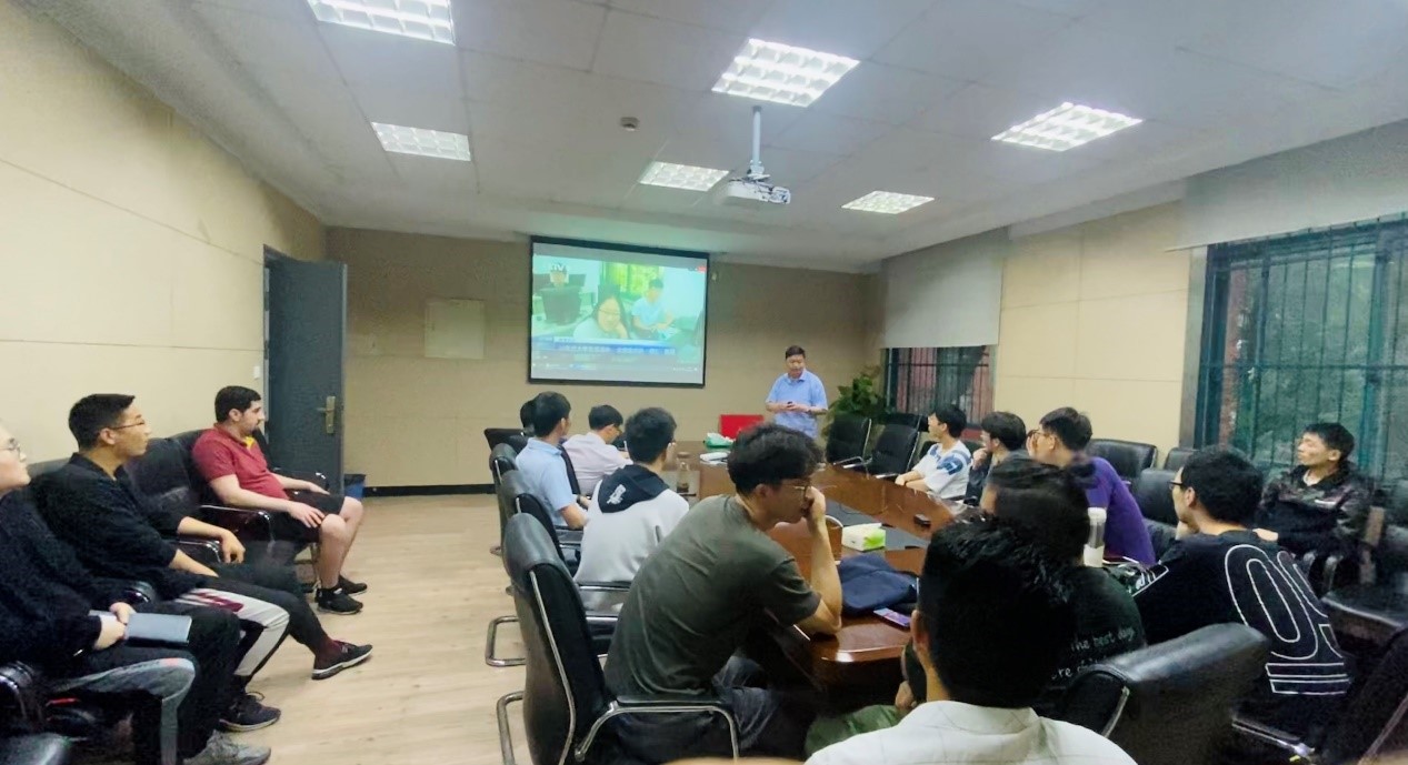 在中國共產黨建黨百年與浙江大學124年校慶之際,浙江大學關工委求是宣講團、學院退休教師莊表中教授應陳偉球教授邀請,為其課題組師生講黨課,一起學黨史,踐行習近平總書記的“知史愛黨,知史愛國” 教導。2021年5月18日晚上5點40,莊表中老師左手拿著雨傘,右手擰著重重的手提袋,早早地來到了教五326會議室。先將袋子里的多本書籍、幾個工程上的零部件、一堆小玩具和手稿擺放在桌面上,接著又去找來了一塊寫字板,然后將U盤里的資料導入電腦,做好一切準備工作后,離講座開始還有點時間,莊老師便與在場師生先行交流。晚上6點,莊老師開始了他的精彩“表演 ”。