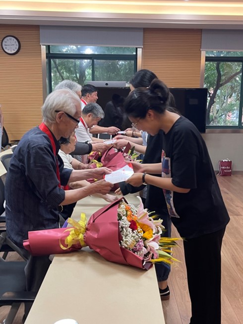 “光榮在黨50年”紀念章獲得者代表為2021年新發展黨員代表發放政治生日卡,希望他們牢記入黨初心,從百年黨史中汲取奮進力量,奮發有為。