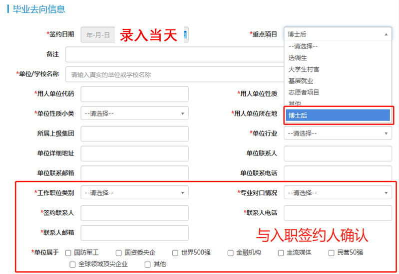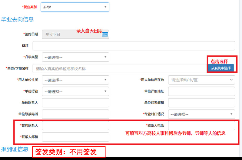 出國(guó)(境)(包括攻讀研究生、做博士后)、境內(nèi)升學(xué)(考研、保研)、國(guó)內(nèi)做博士后的同學(xué),雖然不簽訂就業(yè)三方協(xié)議,但仍需將畢業(yè)去向、檔案寄送、戶口遷移等信息錄入管理系統(tǒng),以便后續(xù)開(kāi)具報(bào)到證(境內(nèi)升學(xué)無(wú)需開(kāi)報(bào)到證)、寄送檔案等。