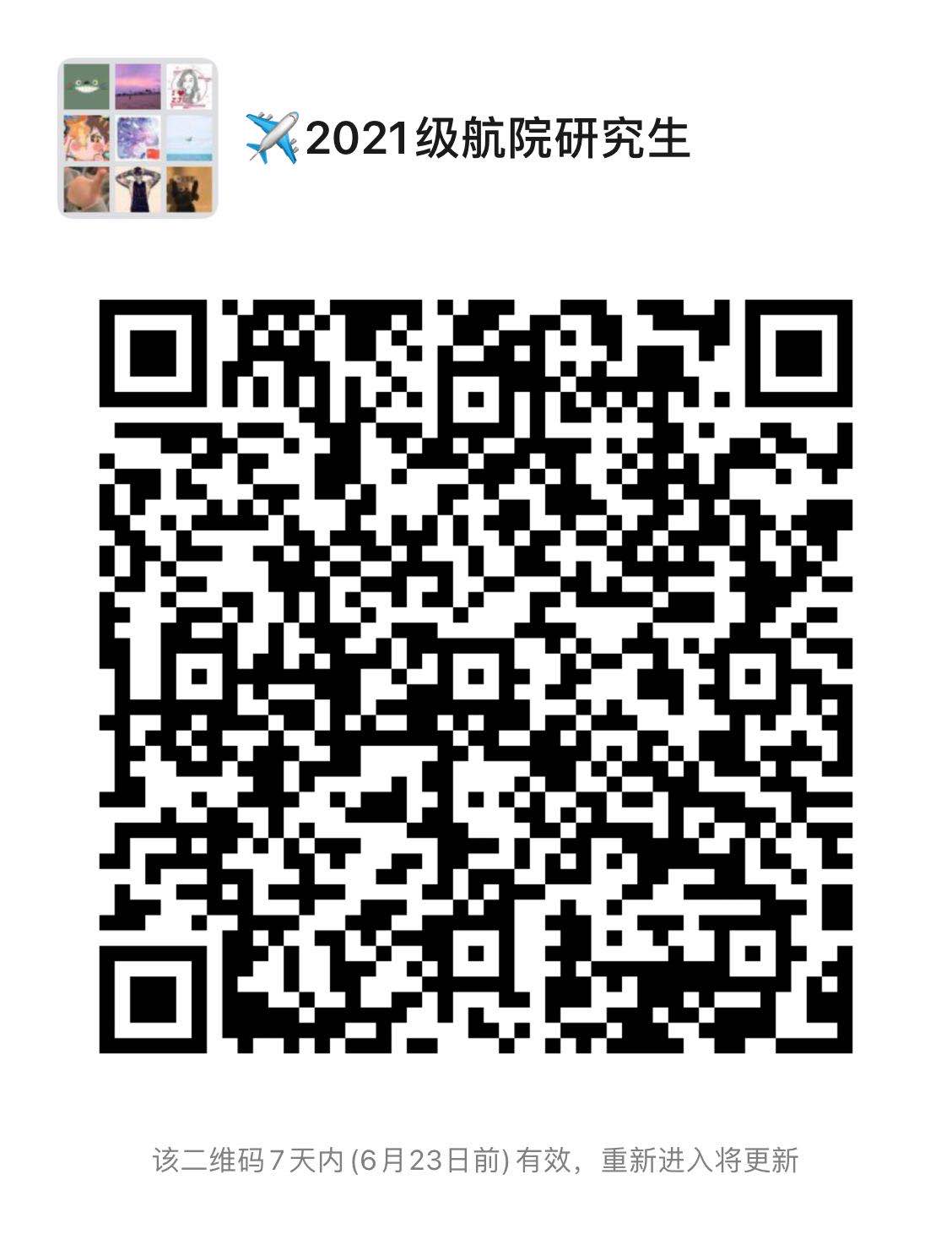 6. 以上請相互轉告,如有問題請及時和學院聯(lián)系,請加入2021級航院研究生群,進群后按照以下格式實名備注:2021博/碩+專業(yè)簡稱+姓名,請確保是本人進群,不接受其他人員進入學院新生群,敬請諒解。