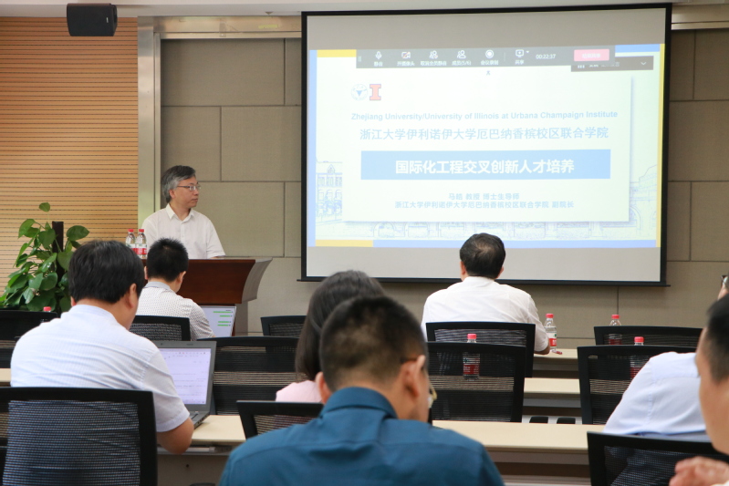 2022年7月1日中午,航空航天學院“教與學”論壇第二十九期和三十期活動同時進行,邀請了來自浙江大學國際校區馬皓教授和崔佳歡特聘研究員分別作報告。馬皓教授帶來的報告題目是“國際化工程交叉創新人才培養”,崔佳歡特聘研究員的報告題目是“浙江大學國際校區機械工程專業培養方案及教學體會”。此次活動在玉泉校區教五333會議室舉行,由航空航天學院副院長王高峰教授主持。